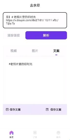 支持多平台解析:支持微视等上百个平台解析历史自动保存,方便用户获取素材。