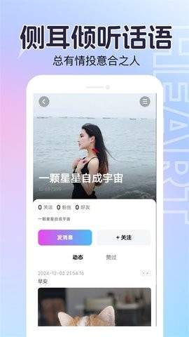 3、提供纯声音聊天模式,用户可通过语音分享自己的故事、心情,感受对方最真实的声音和情绪,增强交流的真实感和亲切感。