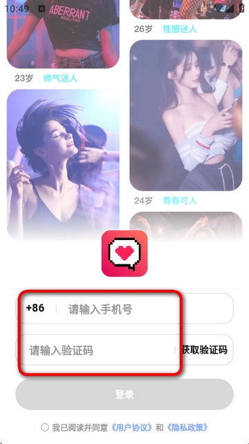 2、进入登录界面,输入手机号验证码登录。