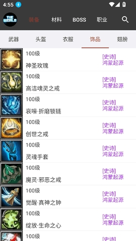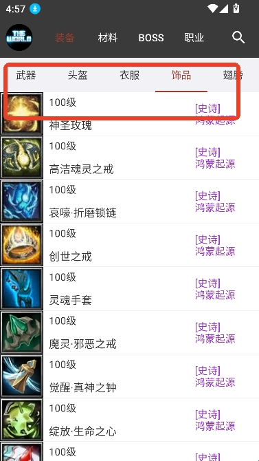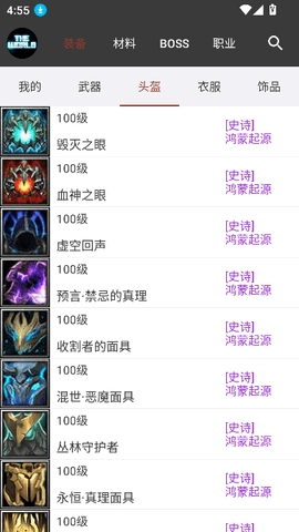 详细的为玩家带去了装备信息,可以从武器、头盔、衣服、饰品进行了解;