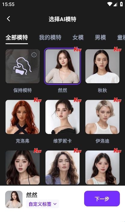 4、图片添加成功后可任意选择模特,确认后点击下一步