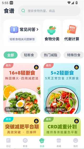 含轻断食等各类食谱,可搜索食物热量,解答轻断食问题