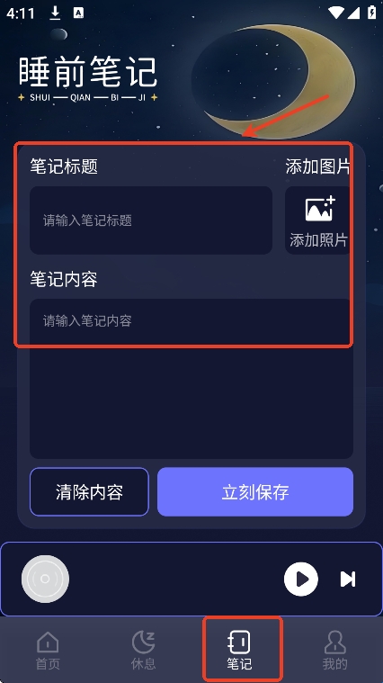 用户们也可以在笔记板块记录自己的睡前心情和感悟
