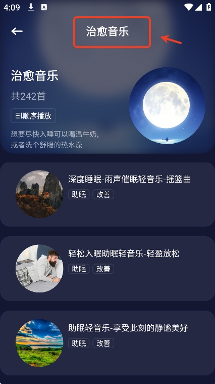 或者用户们选择治愈音乐中的歌曲作为自己的睡前摇篮曲