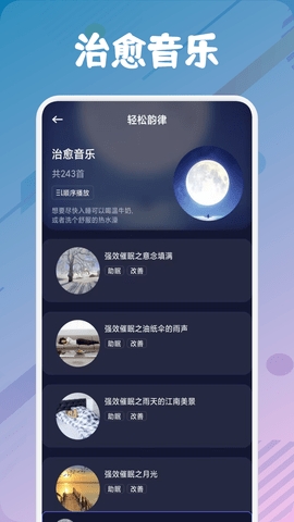 强大的音频播放器功能,在应用中就能直接选择喜欢助眠音乐播放,缓解精神压力;
