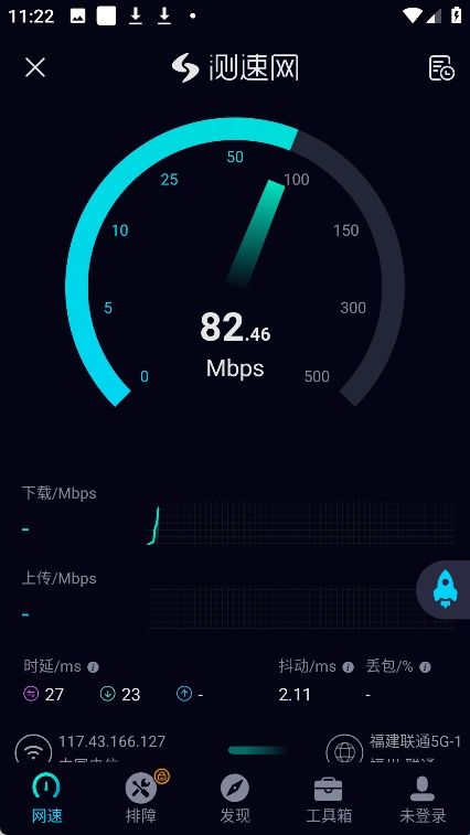 【一键测速】只需几秒,准确快速获得网络测试结果,下载网速、上传网速一目了然