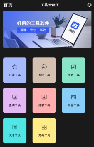 工具全能王是一款有着丰富功能的工具箱软件,软件中包括日常工具、系统工具、图片工具、查询工具等等八大模块,帮助用户轻松解决遇到的生活和其他的问题,每个模块下细分为多种小类工具,满足用户的所有需求。
