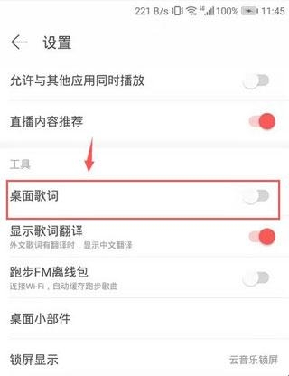 4、点击开启桌面歌词,页面出现一个设置提醒,需要开启网易云音乐悬浮窗权限,点击设置。