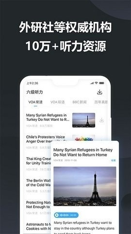 收录外研社、考试真题等10万+权威听力资源,英美发音地道纯正,多场景听力练习