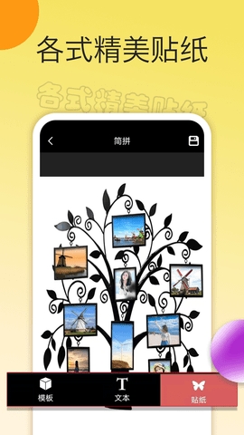 -选择几张图片,将它们重新混合成很酷的照片拼贴;选择最喜欢的布局,使用滤镜,贴纸,框架,文字等编辑拼贴画