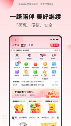 4.本地化生活服务:O2O商超、加油支付服务,周五六日常态95折+更多营销活动,折扣多多,便利十足;