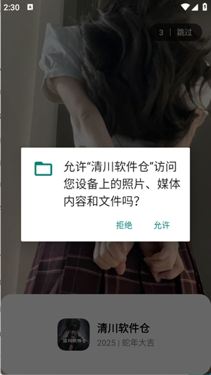 2、打开进入软件,点击允许使用权限功能