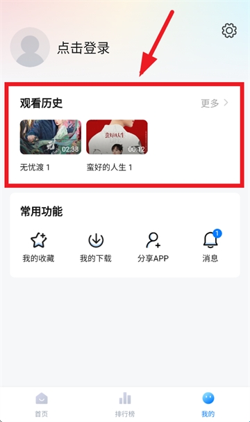 2、在我的界面即可看见观看历史