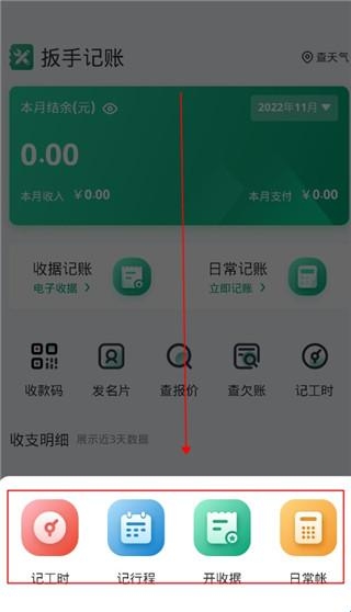包含日常收支记账,开电子收据,查家电安装,维修,清洗报价。