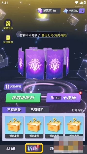 4、在祈愿页面,可以通过抽奖获得皮肤碎片。