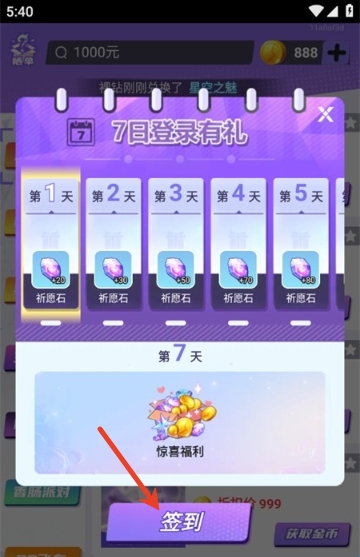 参与每天的在线签到可以领取到金币、祈愿石等各种奖励。