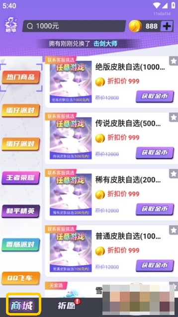 3、进入商城页面,可以看到各种热门游戏皮肤。