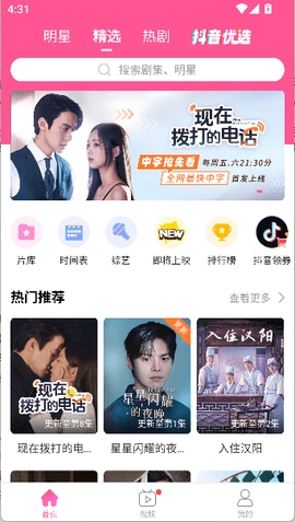 1、界面设计很简单温馨,顶部导航主要是明星,推荐和韩剧;
