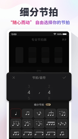 2、用户可以自由设定个性化的节拍,可根据自己对乐器的掌握程度来设定;