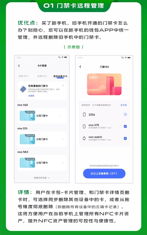 vivo钱包(钱包)是一款正规的金融生活服务平台。软件简化了日常支付、转账的繁琐,中国银联、广发银行等重量级伙伴,作为平台坚实的后盾,让信用贷款、保险等需求触手可及,软件中还有强大的功能,能够支持NFC,可以扫描门禁和乘车公交卡,实现无卡刷门禁和乘坐公交车。