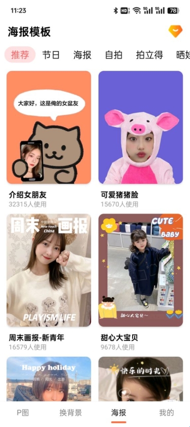 5、内置素材,背景、字体、模板、融合、贴纸、涂鸦、马赛克、滤镜、相框、纹理等应有尽有