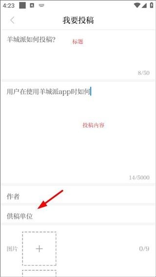 4、进入投稿编辑页面,用户需要输入稿件标题、内容、作者、投稿单位、图片/视频等,选择投稿渠道,点击提交即可投稿。