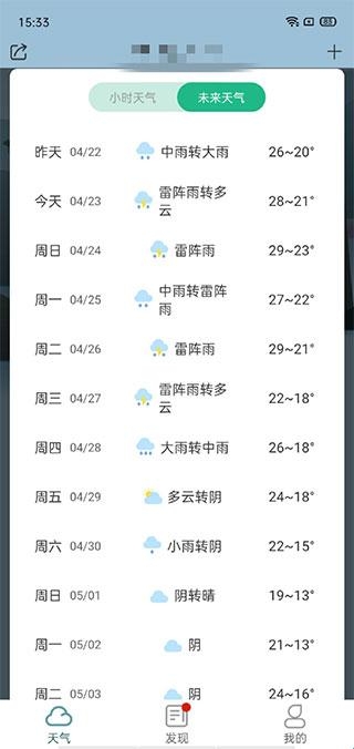 逐时预报:实时掌握24小时天气变化,当天温差提前预防。