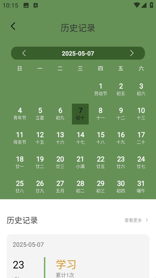4、还有历史记录,可以查看每天学习情况。