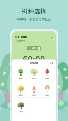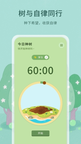 种树学习是为学生党和上班族打造的自律养成软件,软件为用户提供了各种样式的虚拟树苗,在你完成对应的任务后,就可以领取喜欢的树苗,然后在软件中对自己的树苗栽培,用户只需要完成更多专注任务就可以解锁更多树苗,让用户在潜移默化中养成良好的工作学习习惯,需要的用户抓紧时间下载吧!