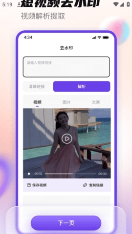 操作简便:界面设计简洁直观,易于上手,用户只需复制视频链接,粘贴到APP中,即可快速提取无水印视频。
