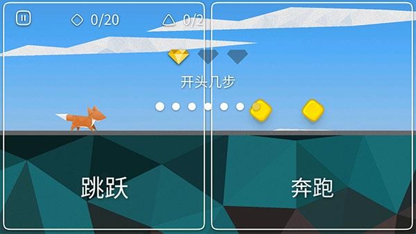 4、由于游戏支持轻敲和触按模式,触按直接敲击手机后方即可,触按模式下点击屏幕左边可以控制跳跃,点击屏幕右边可以控制狐狸奔跑,长按会加速,遇到沟壑可以加速跳跃冲过去。