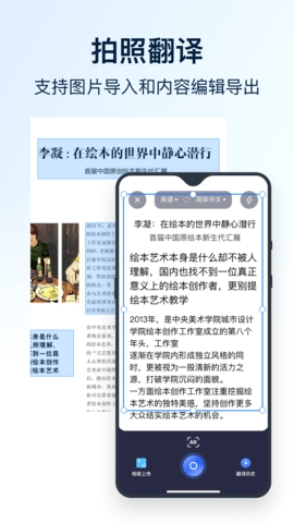 3、拍照翻译:支持图片导入和内容编辑导出;