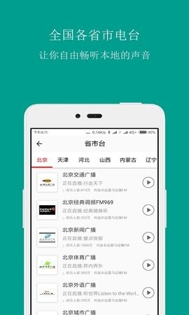 2、比如说省市台里面包含了全国所有省、市的相关电台,然后根据你的需求来选择电台来收听。