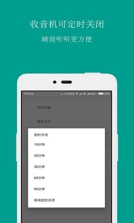 6、定制关闭设置、支持用户在睡前收听、一键设置关闭时间;
