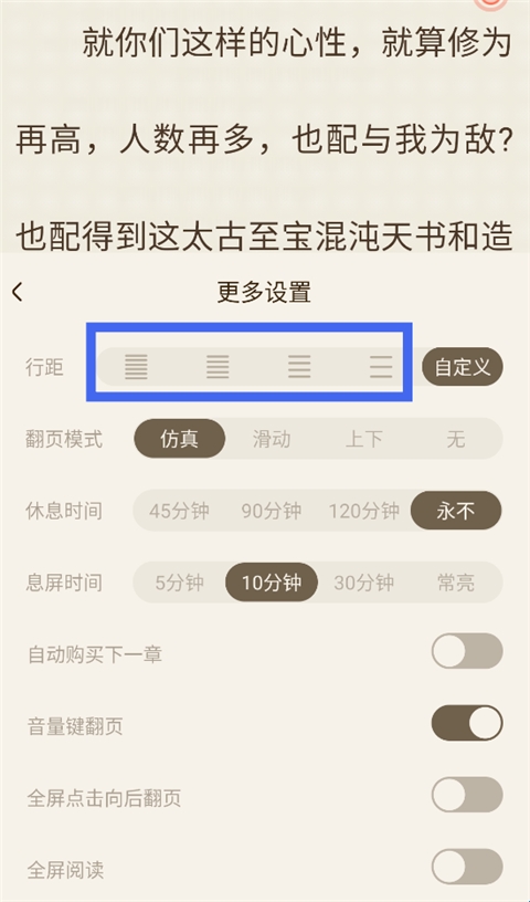 5、也可以点击【自定义】,自由调节行间距、段间距、上线边距等。