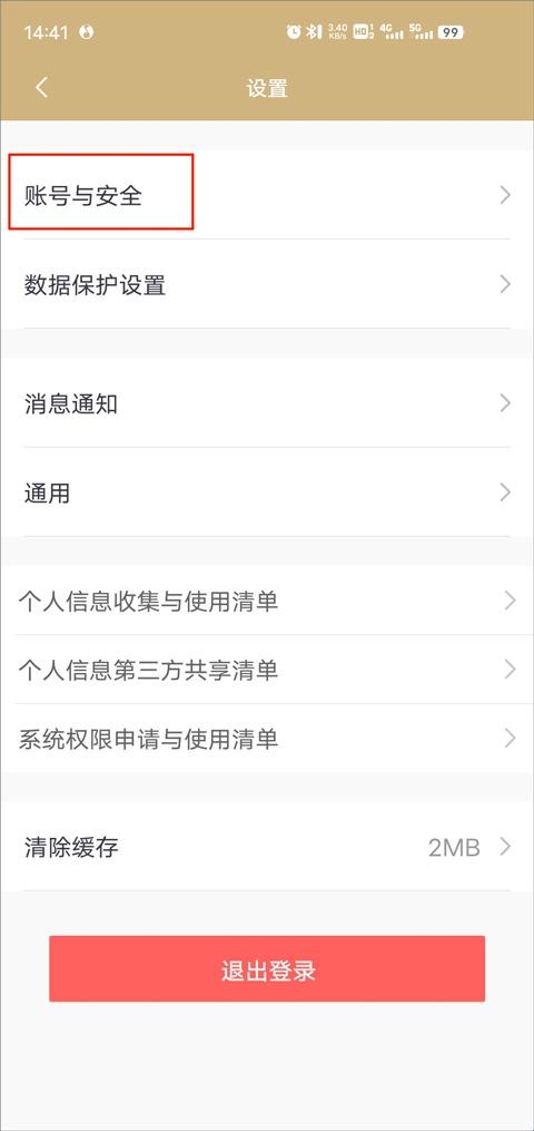 2、然后点击账号与安全;
