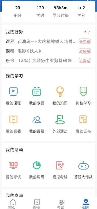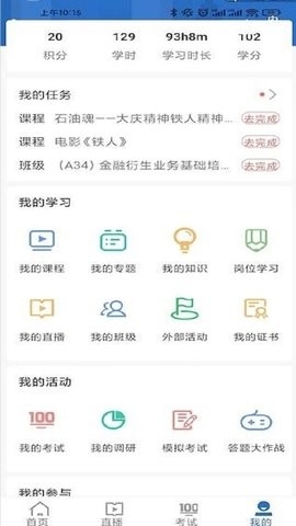 1、我的课程,可观看所选课程和已完成课程。