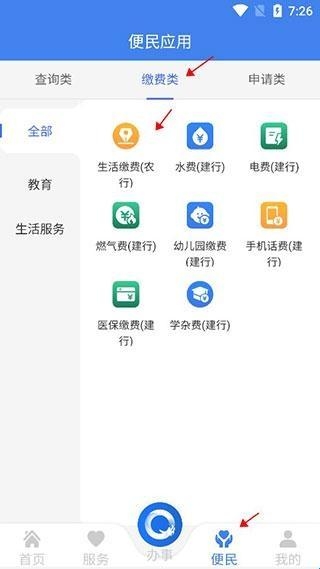 2、点击便民一栏,点击缴费可以看到生活缴费。