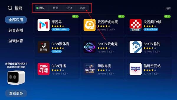1、专为智能电视和安卓电视盒子设计的应用商店非常适合匹配和体验。