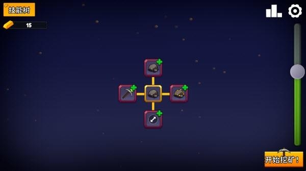 2、非常多的矿石需要你去点击来挖掘,各种升级选项可以让你去选择来提升自己的挖矿速度。
