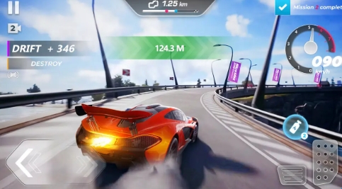 1、真实的物理引擎:游戏采用真实的物理引擎,模拟真实的赛车驾驶体验。玩家需要掌握精准的操控技巧,灵活地避开障碍物和对手的攻击,全速冲刺向终点。