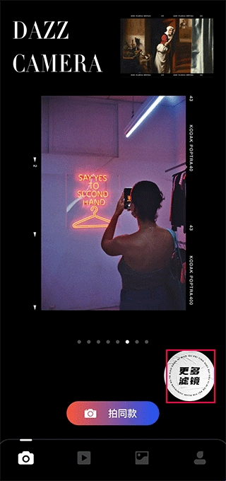 1、首先打开dazz相机,点击更多滤镜;