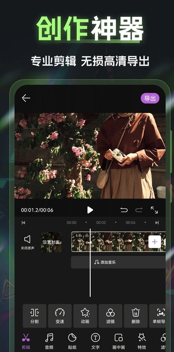 1、视频剪辑:从裁剪、拼接到添加滤镜和炫酷转场等,所有操作一应俱能,让你轻松制作大片级作品!