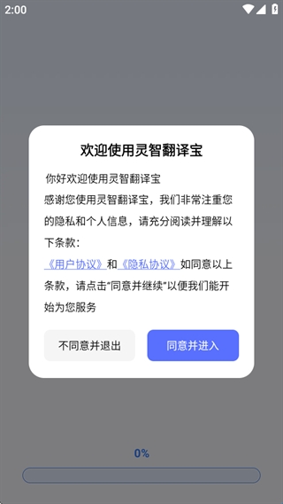 1、打开app,阅读用户隐私协议政策之后点击同意并进入;