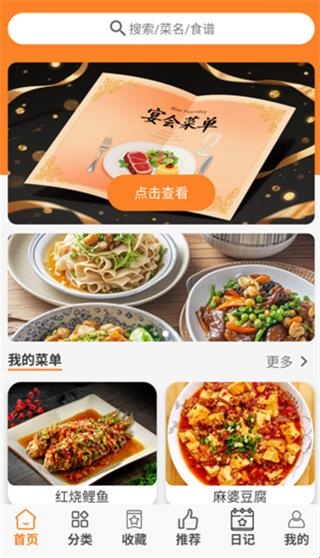 3、进入首页,首页可以看到推荐的一些美食食谱和菜单。