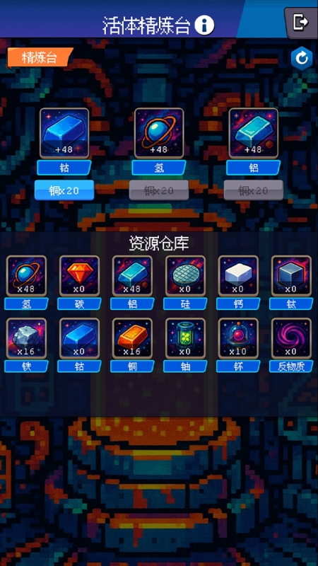 1、在随机星球上逐步探索并解锁区域,采集12种基础元素资源,挑战星球首领。