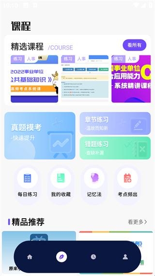 2、点击下方课程,可以看到精选课程还有精品推荐,还有各类练习题,非常全面。