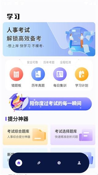 1、进入软件首页,这里可以各样的考题和学习计划,还有提分神器等,可以按需学习。