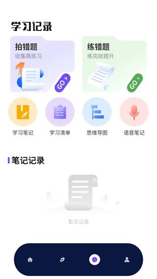 3、点击下方学习计划,有各类错题集还有学习笔记、清单以及思维导图等,还有笔记记录。