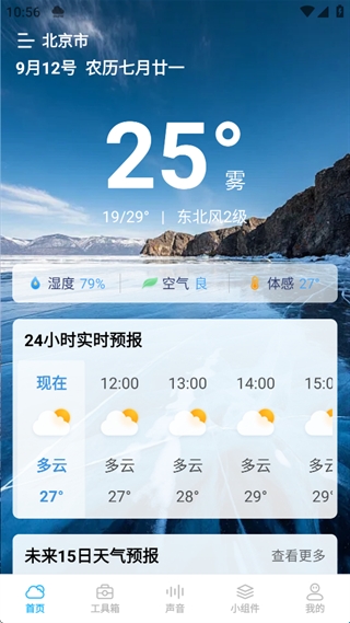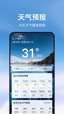 2、独家15天精准预报算法,晴雨、温差、风力一目了然,提前为您的活动安排做足准备。
